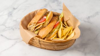 With ham, smoked turkey, gouda, tomato, lettuce, & chili mayo