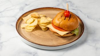 With grilled chicken, avocado, caramelized onion, tomato, iceberg lettuce, gouda, & mayonnaise