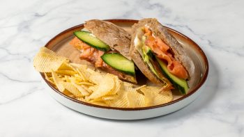 With smoked salmon, iceberg lettuce, cucumber, & Philadelphia cream cheese