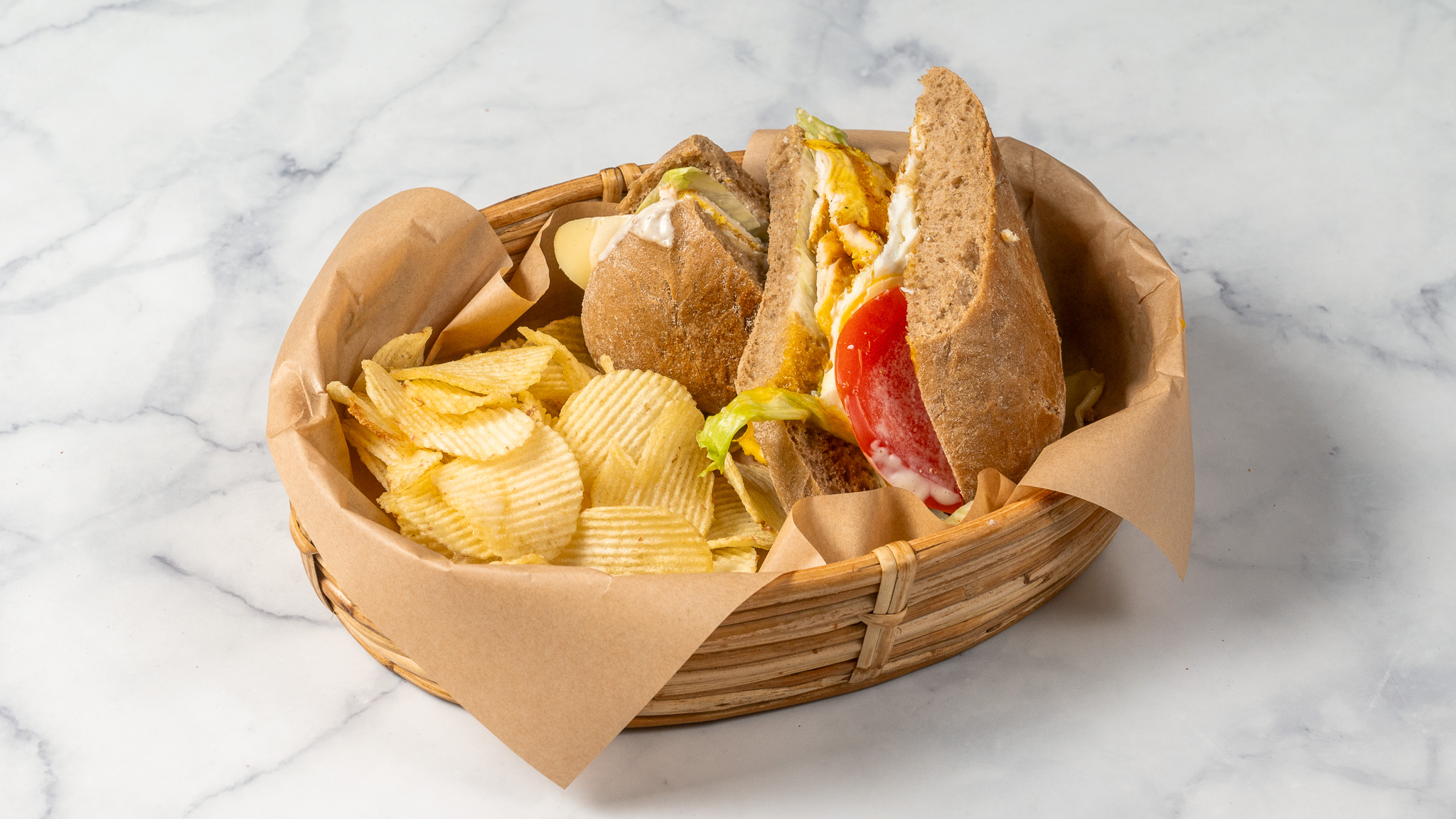 With grilled chicken, gouda, tomato, lettuce & Caesar's sauce