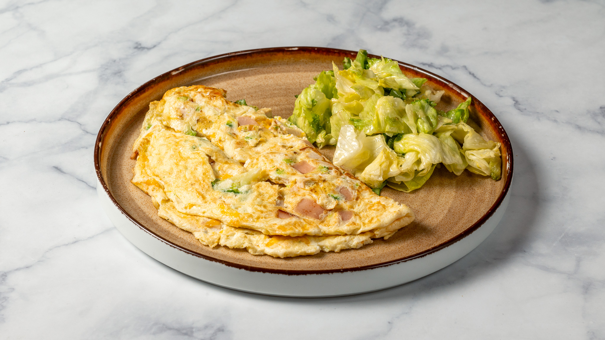 Με 4 ασπράδια αυγών, γαλοπούλα, κοτόπουλο, μπρόκολο, light cheese & φρυγανισμένο προζυμένιο ψωμί. Συνοδεύεται πράσινη σαλάτα