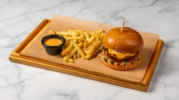Με διπλό μπιφτέκι μοσχαρίσιο, διπλό cheddar, διπλό καπνιστό μπέικον, ντομάτα, iceberg, αυγό τηγανητό & μαγιονέζα. Συνοδεύεται πατάτες τηγανητές