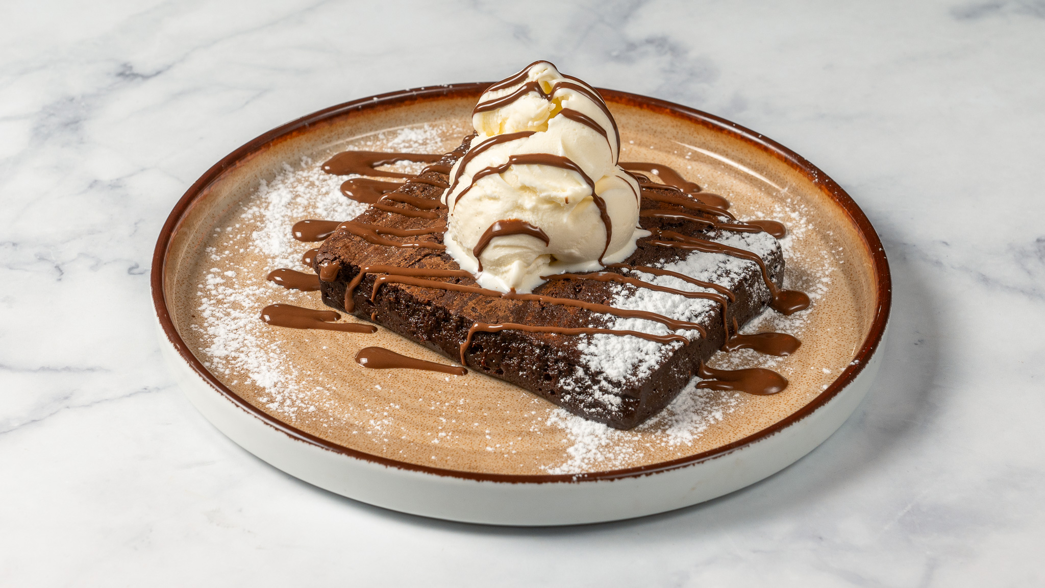 Υγρό σοκολατένιο cake. Συνοδεύεται 1 μπάλα παγωτό βανίλια