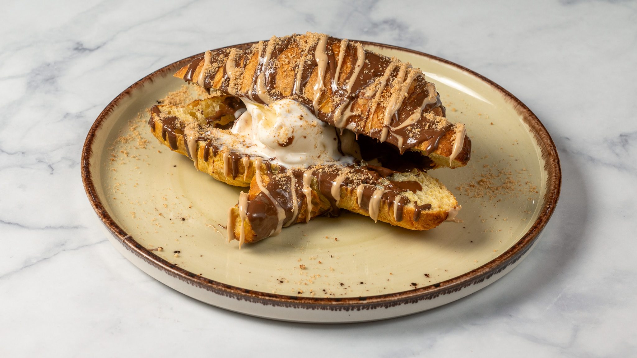 Με πραλίνα Bueno, παγωτό βανίλια, σοκολάτα γάλακτος & τριμμένο μπισκότο
